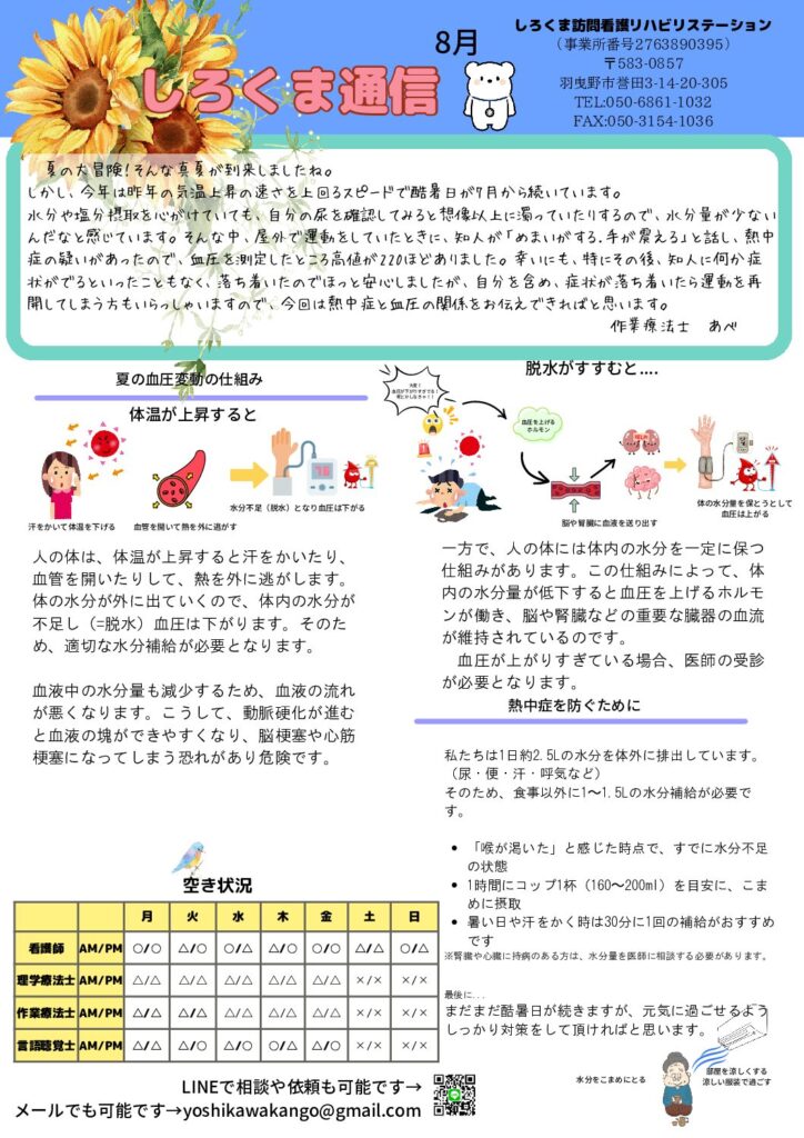 厳しい暑さの毎日ですが、いかがお過ごしでしょうか?